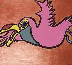 Heather's first solo exhibition is a vibrant display of colourful paintings showcasing farm animals. With a playful touch, Heather captures the essence of each creature, from curious calves to mischievous piglets. It's a fun and vibrant art gallery collection that will brighten your day as you delve into the world of farm life through Heather's eyes. Hear Heather's story here.