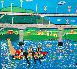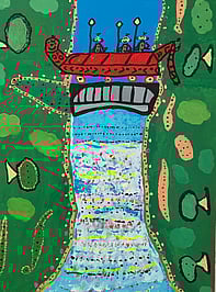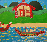 Kemara Mita brings their solo exhibition "Journey on the Waikato River" to Arts for Health, telling a vivid tale of a waka's voyage along New Zealand's longest river through their compelling paintings.