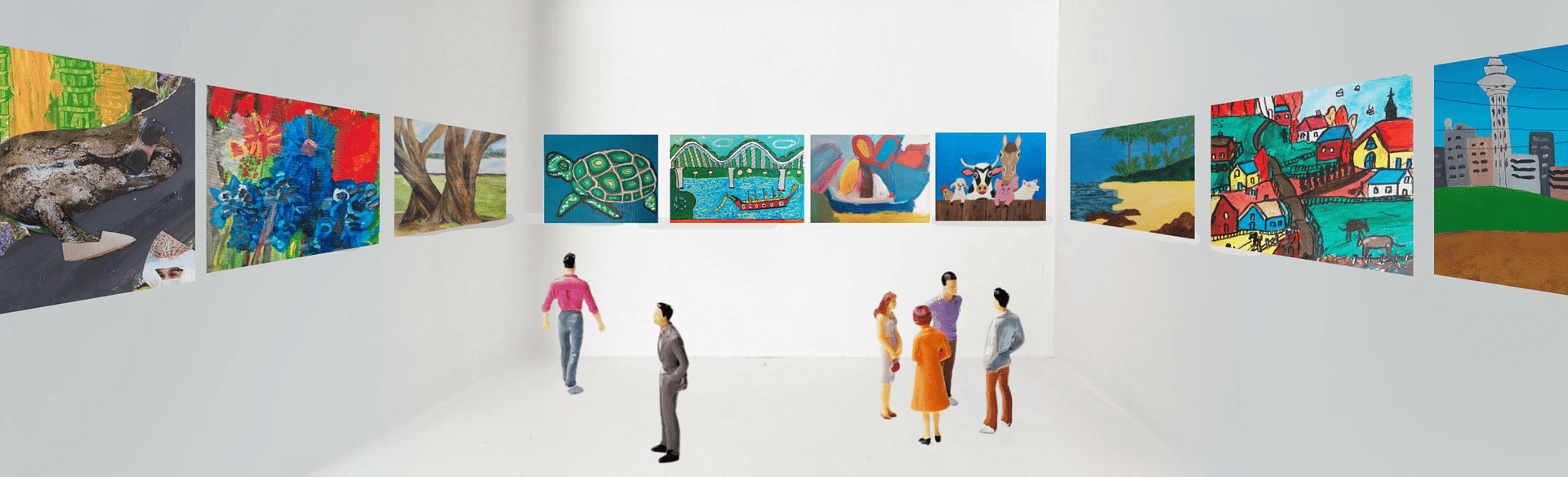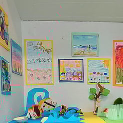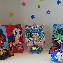Each young artist has created their own tiny artwork, thoughtfully paired with character figurines that bring their scenes to life. Alongside these, they’ve explored painting on rocks, experimenting with colour and texture on unique, natural surfaces. This exhibition celebrates creativity, playfulness, and the joy of artistic discovery.