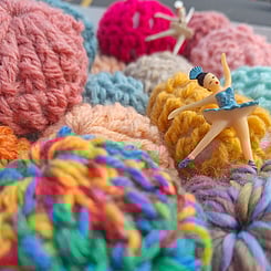 This exhibition transforms the gallery into a riot of colour, movement, and playfulness. This group exhibition fills every corner with soft, crocheted puff balls, their vibrant forms swirling around dancing figures and bursting into the windows of New Zealand’s smallest gallery. Overcrowded, joyful, and immersive, Twirl & Puff invites viewers to explore how colour, texture, and exuberant energy can overflow a space, turning the familiar into a playful wonderland.