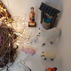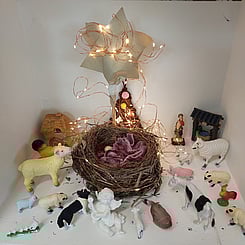 Our artists came together to create a unique Nativity using found materials and objects from our studio—including a real bird’s nest! Make sure to check it out—our final exhibition of the year, twinkling next to the lights.